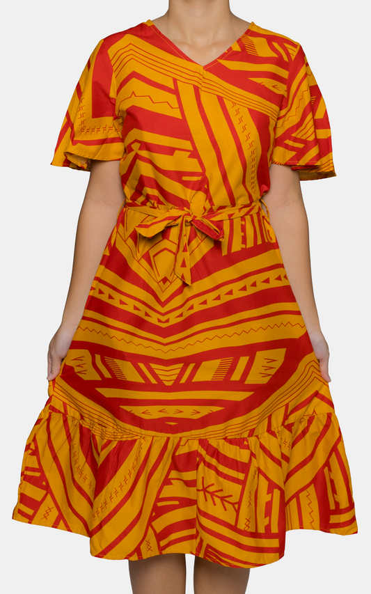 Eveni Pacific Ladies Ula Dress - Tarako Orange