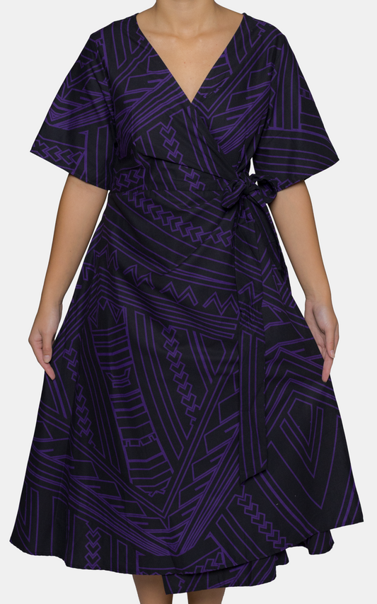 Eveni Pacific Ladies Lily Wrap Dress - Mauga Maroon