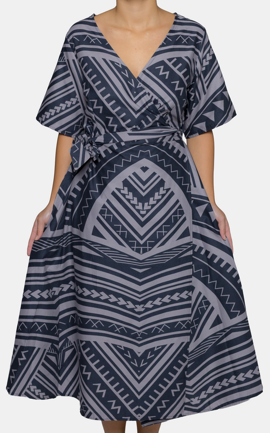 Regular price $89.00 NZDRegular priceUnit price perSale price $89.00 NZDEveni Pacific Ladies Lily Wrap Dress - Grand Slam Grey