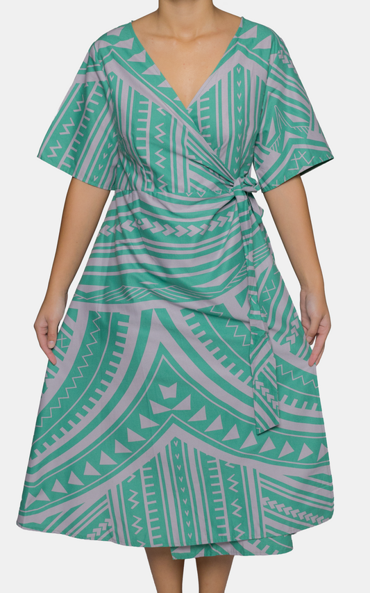 Eveni Pacific Ladies Lily Wrap Dress - Vaea Teal